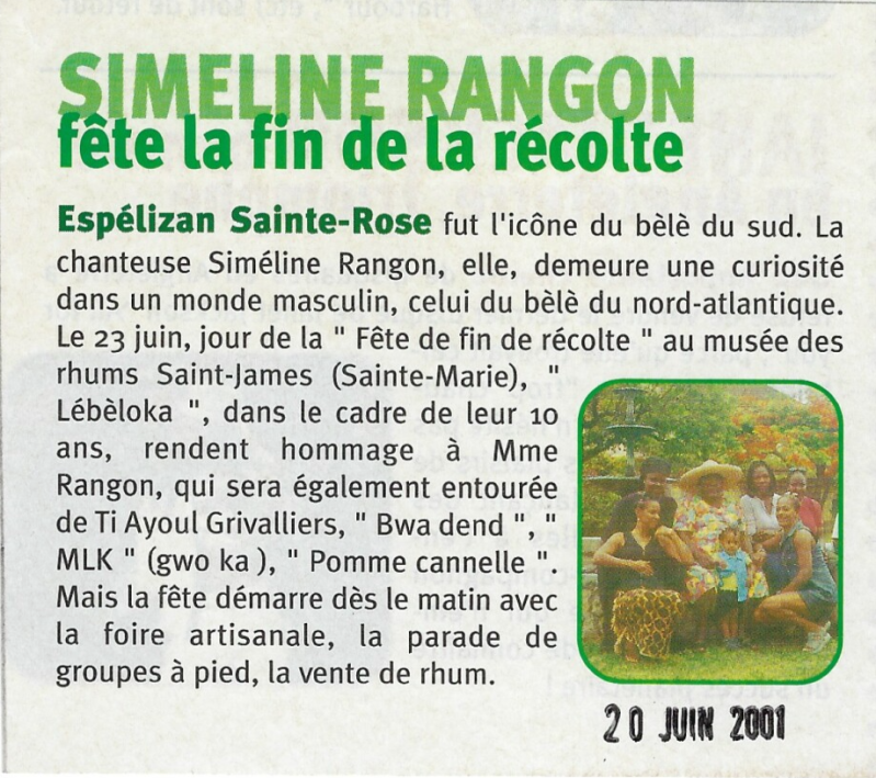 Simeline Rangon & le groupe "lébéloka" à la fête de fin de récolte 2001