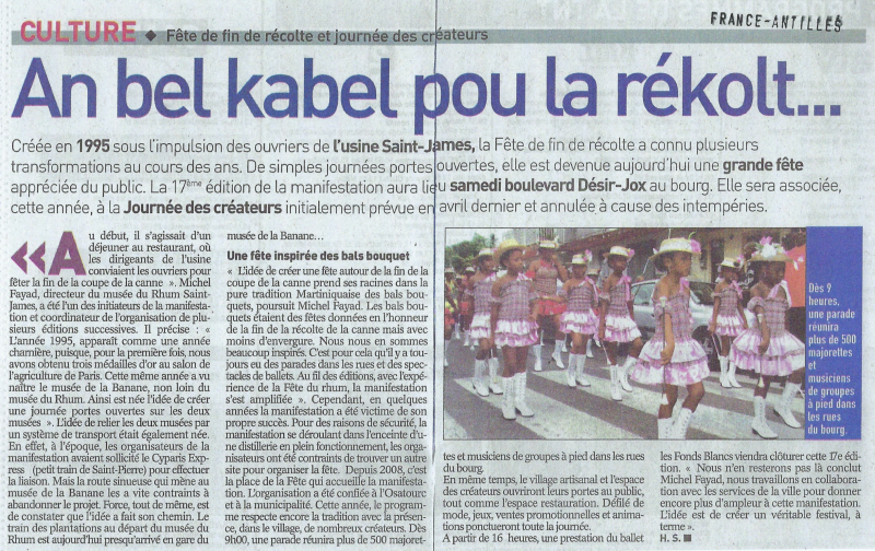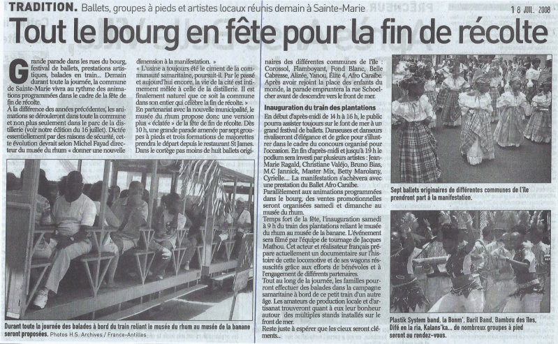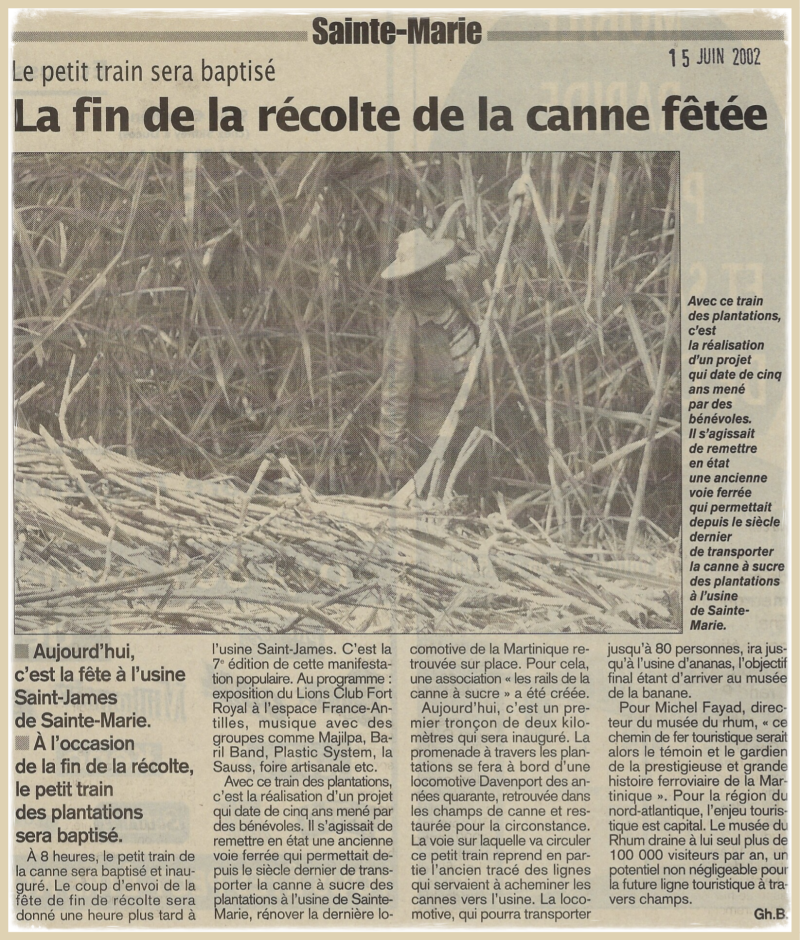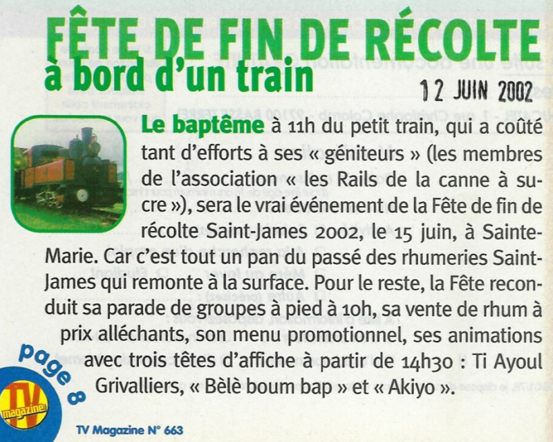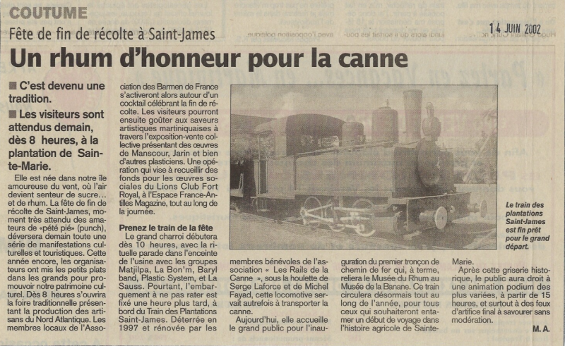 De cette manifestation naîtra l'idée du train des plantations qui reliera le musée du rhum au musée de la banane, et la naissance d'une nouvelle association "les rails de la canne à sucre".