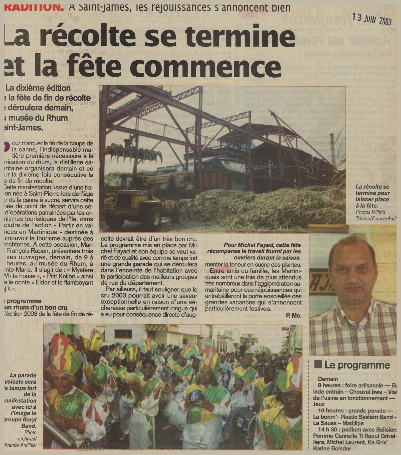 1995 : Michel Fayad lance la 3ème édition de la Fête de fin de récolte à l'origine du Spiritourisme à la Martinique