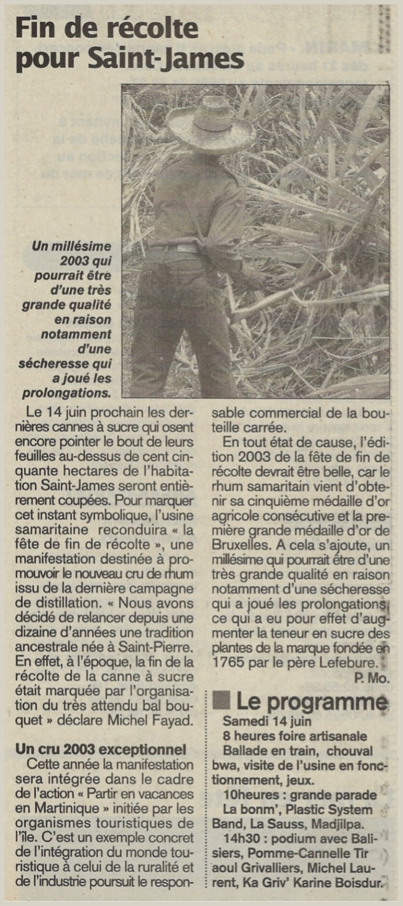 Michel Fayad présente la Fête de fin de récolte 2004 de la distillerie Saint-James.