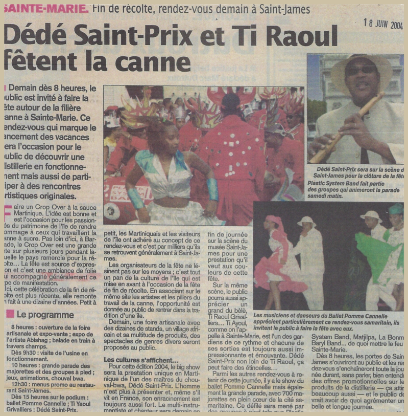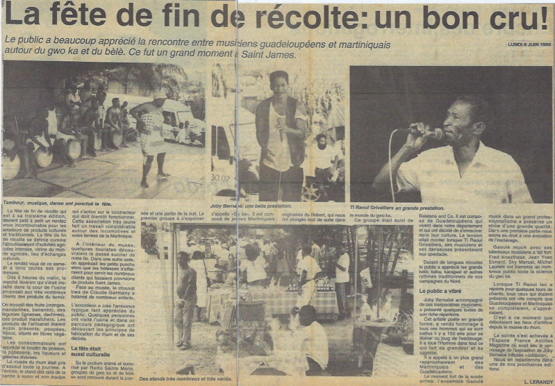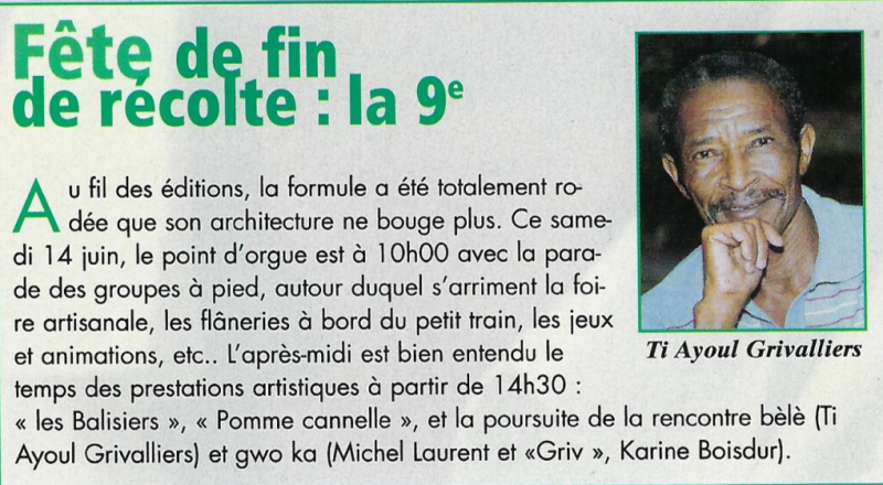 Michel Fayad invite Ti Raoul Grivalliers pour la "fête de fin de récolte". Atv Juill. 2000
