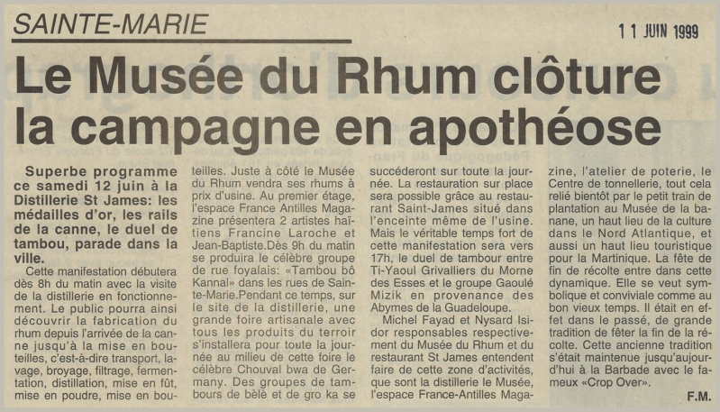 *Michel Fayad programme en Juin 1997, une double journée Portes Ouvertes : Musée du rhum - Musée de la Banane.