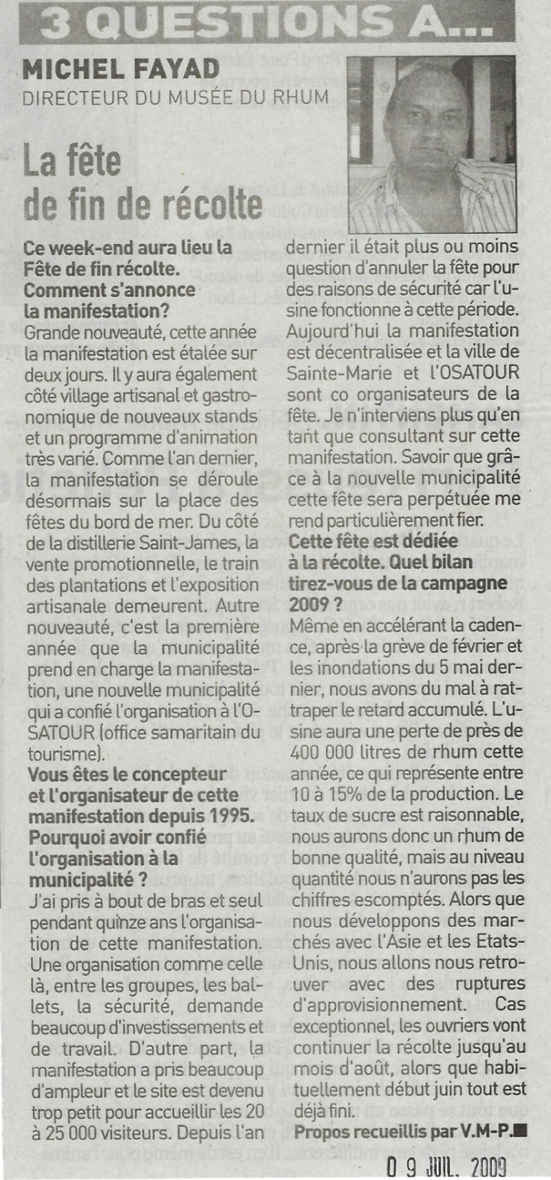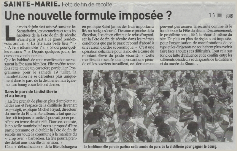 Michel Fayad présente la Fête de fin de récolte 2007 : Une tradition qui s'installe à la Martinique.