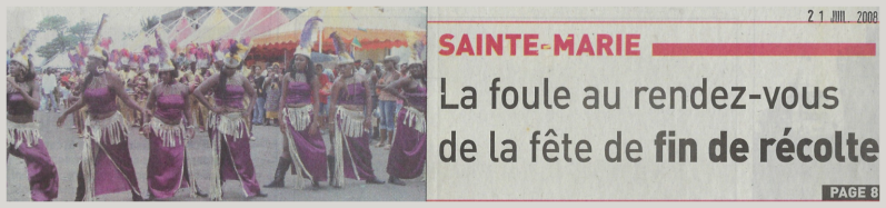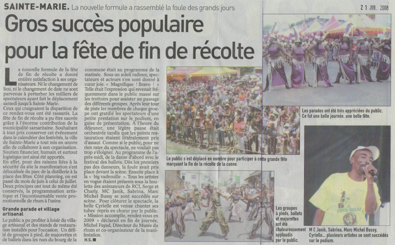 Pour cette fête de fin de récolte 2008, en tête d'affiche MC Jannick et Cyrielle, sans oublier Sabrina, Marc Michel Bussy