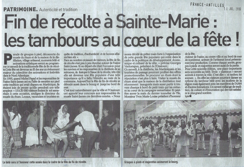L'ASSOCIATION DES BARMEN DE FRANCE (RÉGION MARTINIQUE ) TOUJOURS PRÉSENTE À LA FÊTE DE FIN DE RÉCOLTE .