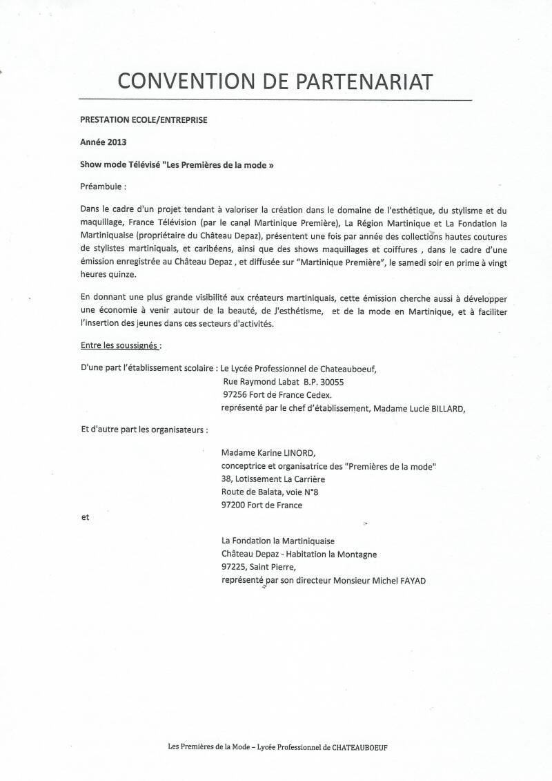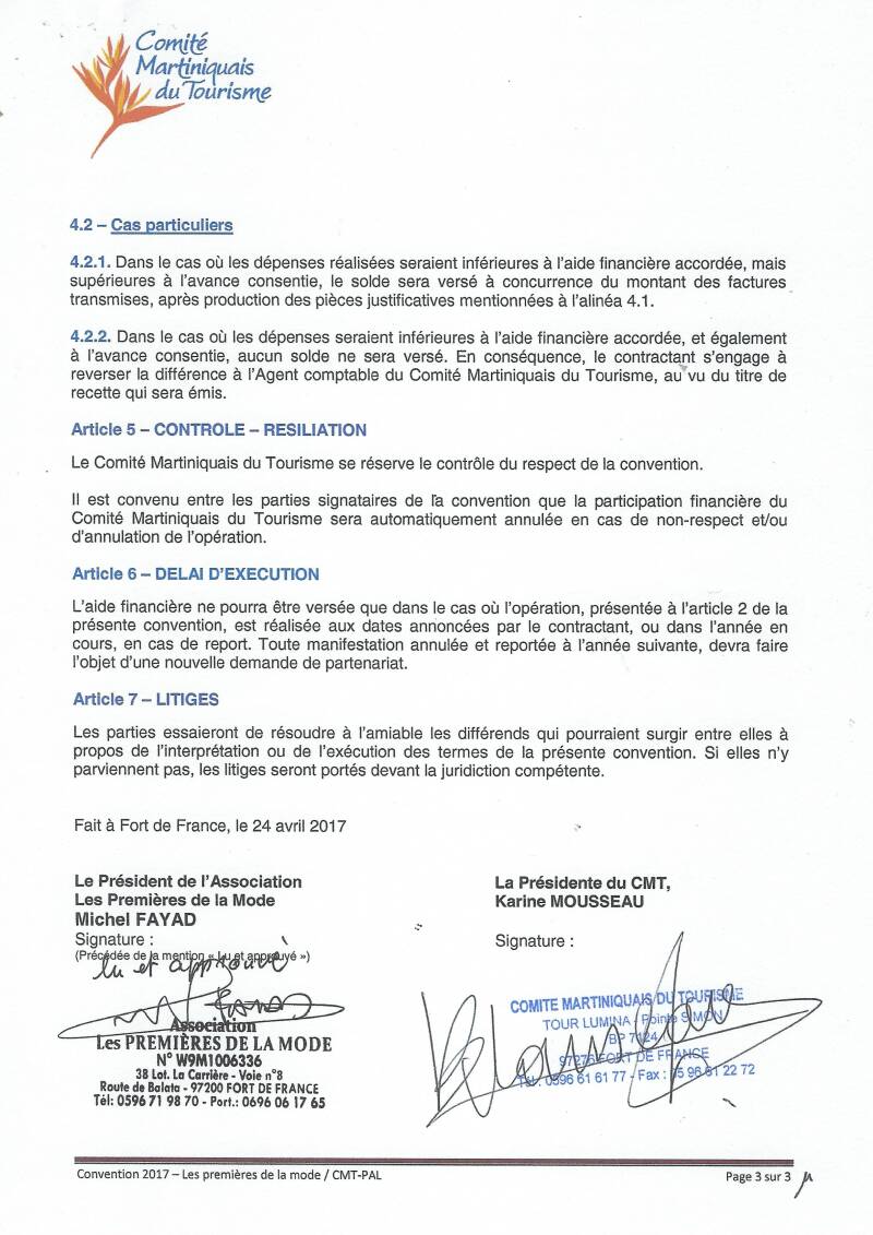 Face à l'ampleur du succès de cette Fashion-Week, le Comité Martiniquais du Tourisme à son tour, s'est associé à cette Fashion-Week, par une convention de Partenariat, avec l'association "Les Premières de la Mode". (extrait d'une convention comprenant 3 pages)