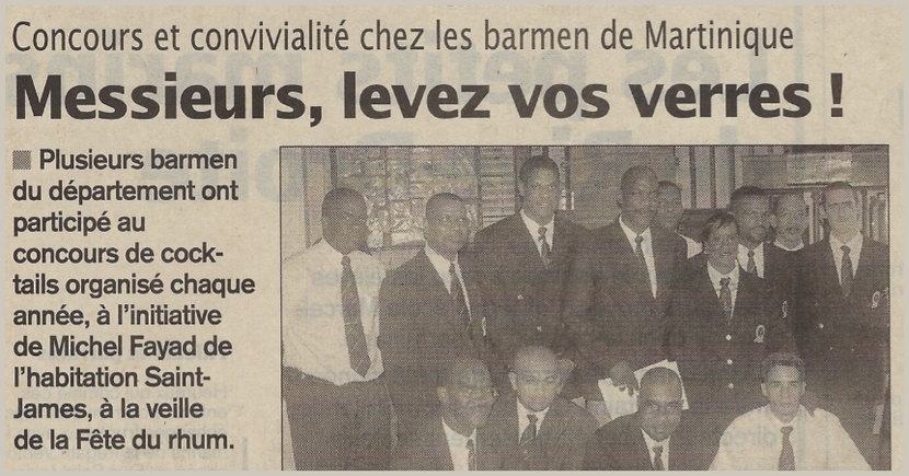 L'association des barmen de France (Région Martinique), dans le cadre d'un partenariat avec le musée du rhum, a installé le premier concours de Barmen de Martinique en ouverture de la fête du rhum du mois de décembre 1995 à la distillerie Saint-James.