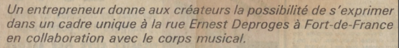 Michel Fayad ouvre la première "Galerie d'Art contemporain" sur l'habitation Saint-James 1994, et signe un partenariat avec le seul quotidien de Martinique "France-Antilles", qui tire à 70.000 exemplaires/jour. décembre 1994.