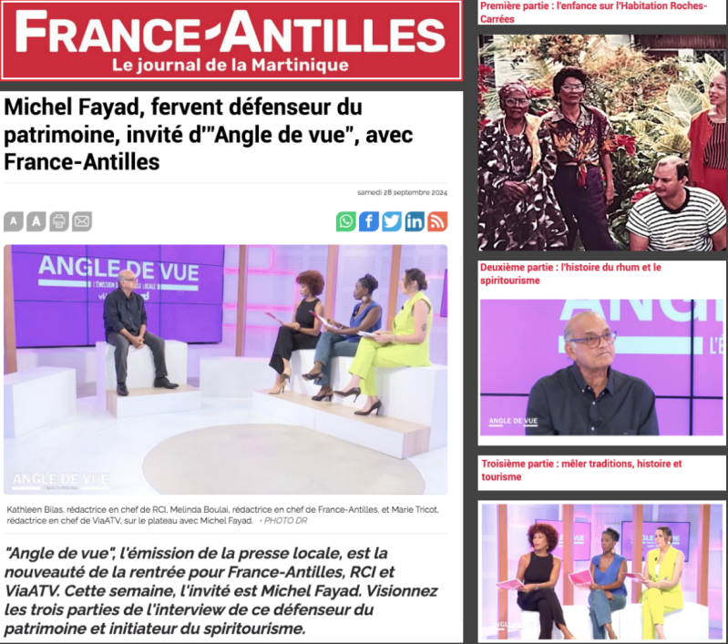 "Le Spiritourisme : la raison d'être du tourisme martiniquais" explique Michel Fayad ... extrait viàAtv