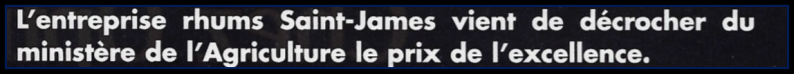 Les Rhums Saint-James, lauréat pour la deuxième fois des Trophées du dynamisme à l'export sur les nouveaux marchés par la Chambre de Commerce & d'Industrie de la Martinique. 1:45